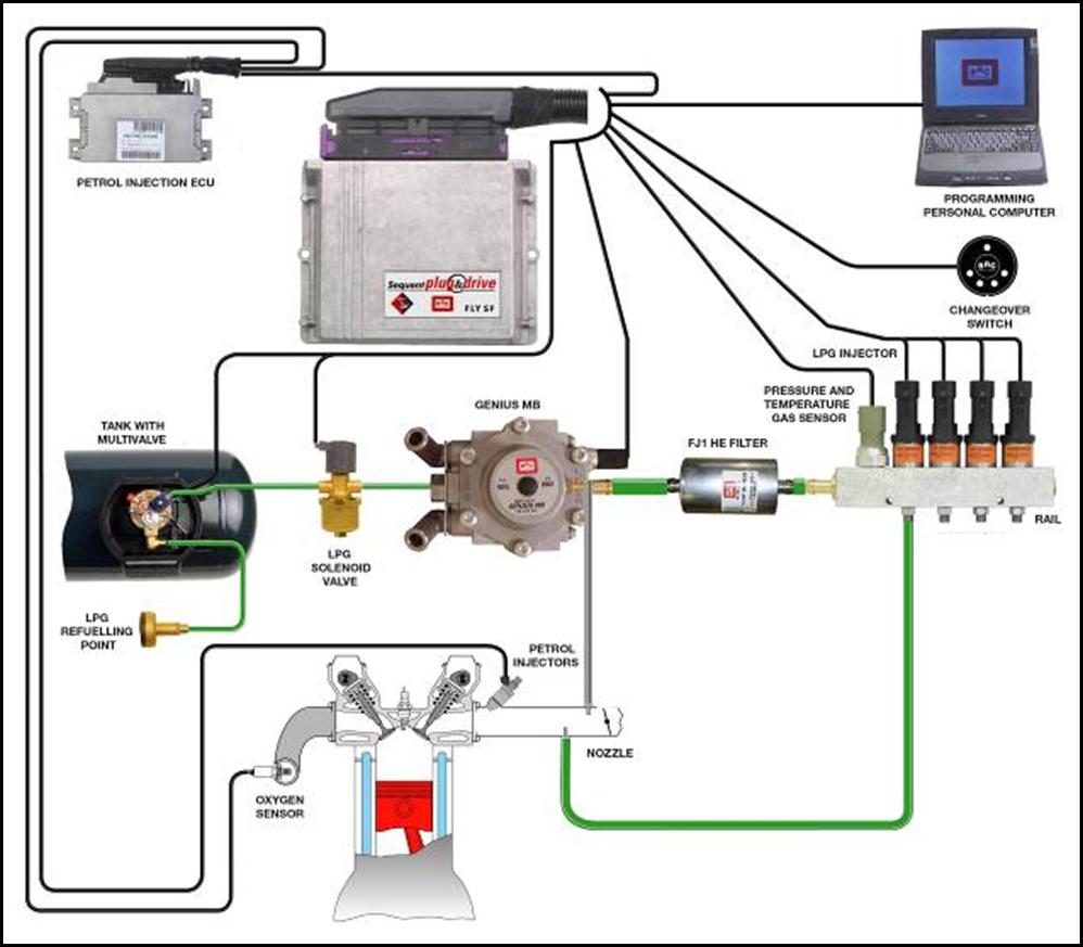 Sequent Plug & Drive, «Сиквент Плаг энд Драйв» — это новая газотопливная система питания двигателя, подходящая как для сжиженного нефтяного газа (LPG), так и для сжатого природного газа (CNG), разработанная компанией BRC. Система разработана на основе опыта, накопленного при создании систем линии Sequent («Сиквент»), но при её создании использован совершенно новый подход, который позволяет легко управлять подачей как природного, так и нефтяного газа (LPG) в бензиновый впрысковой двигатель. Система основана на улучшенной схеме оборудования, в состав которого входят: редуктор давления, форсунки компании BRC, интегрированные в топливную рампу, датчики давления и температуры, а также надёжный, мощный и высокоскоростной электронный блок управления (ЭБУ). Главное новшество — это программное обеспечение, которое благодаря новым алгоритмам управления позволяет оптимизировать дозирование газового топлива простым и интуитивно понятным способом, так что оператору легко добиться оптимальных результатов (отсутствуют ошибки работы двигателя — Check engine). Для обеспечения высокой степени интеграции с системой управления бензинового впрыска, система Sequent Plug & Drive располагает собственной обновляемой системой диагностики работы газовой системы и имеет возможность установления связи с оригинальной/основной системой OBD автомобиля.Структурная схема Sequent Plug & Drive
